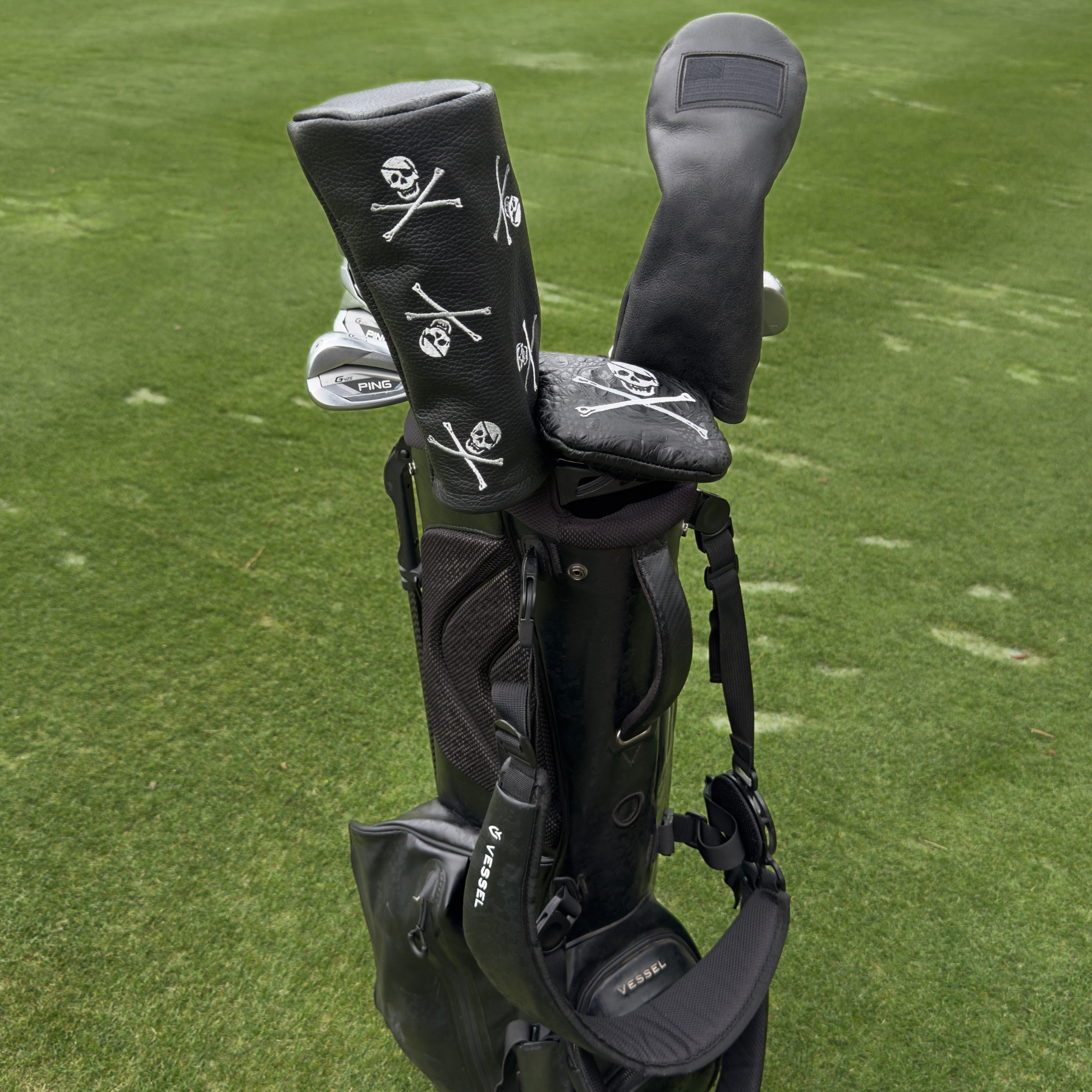 This barrel headcover is made from authentic cowhide leather with the Jolly Roger design embroidered throughout. Fleece lined interior to protect your club head from scratches and dings. Design to fit all woods securely and snug.
